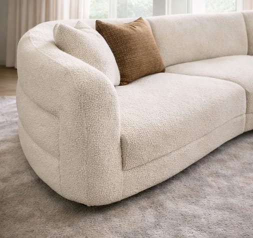 | Curved Sectional Design | Unique shape for a stylish and spacious layout |